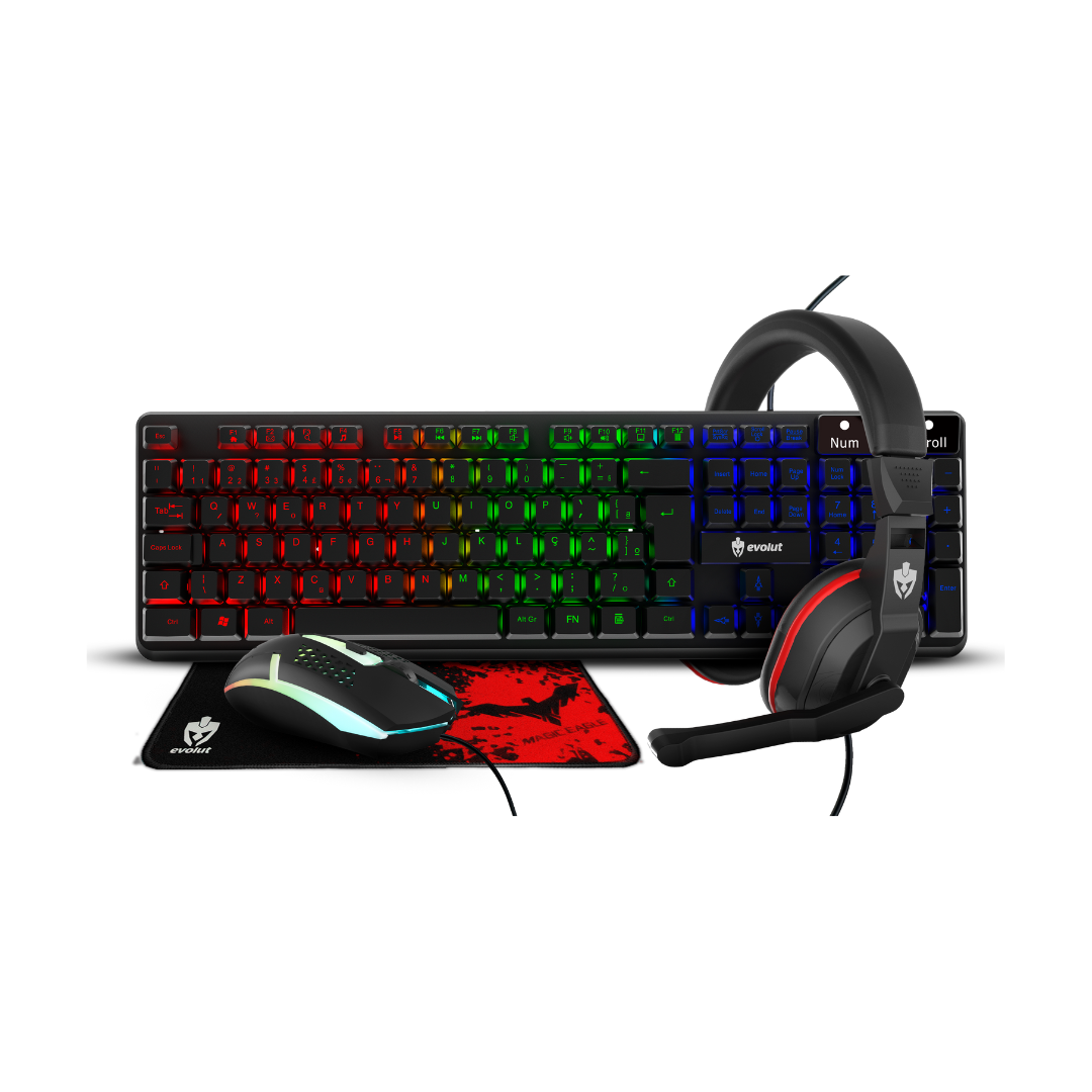 Equipamento completo para você começar a jogar como um profissional. Teclado com iluminação Rainbow, mouse de alta precisão, headset imersivo e mousepad de resposta rápida - tudo que você precisa para dominar os jogos.